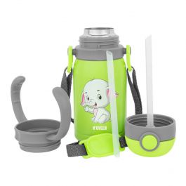 Bidon TB564 v zeleni barvi z motivom slona je odličen za prenašanje tako toplih kot hladnih napitkov. Bidon je opremljen s posebnim ročajem za enostavno prenašanje, ki se odlično obnese pri delu, v šoli, med potovanji in pri športu.